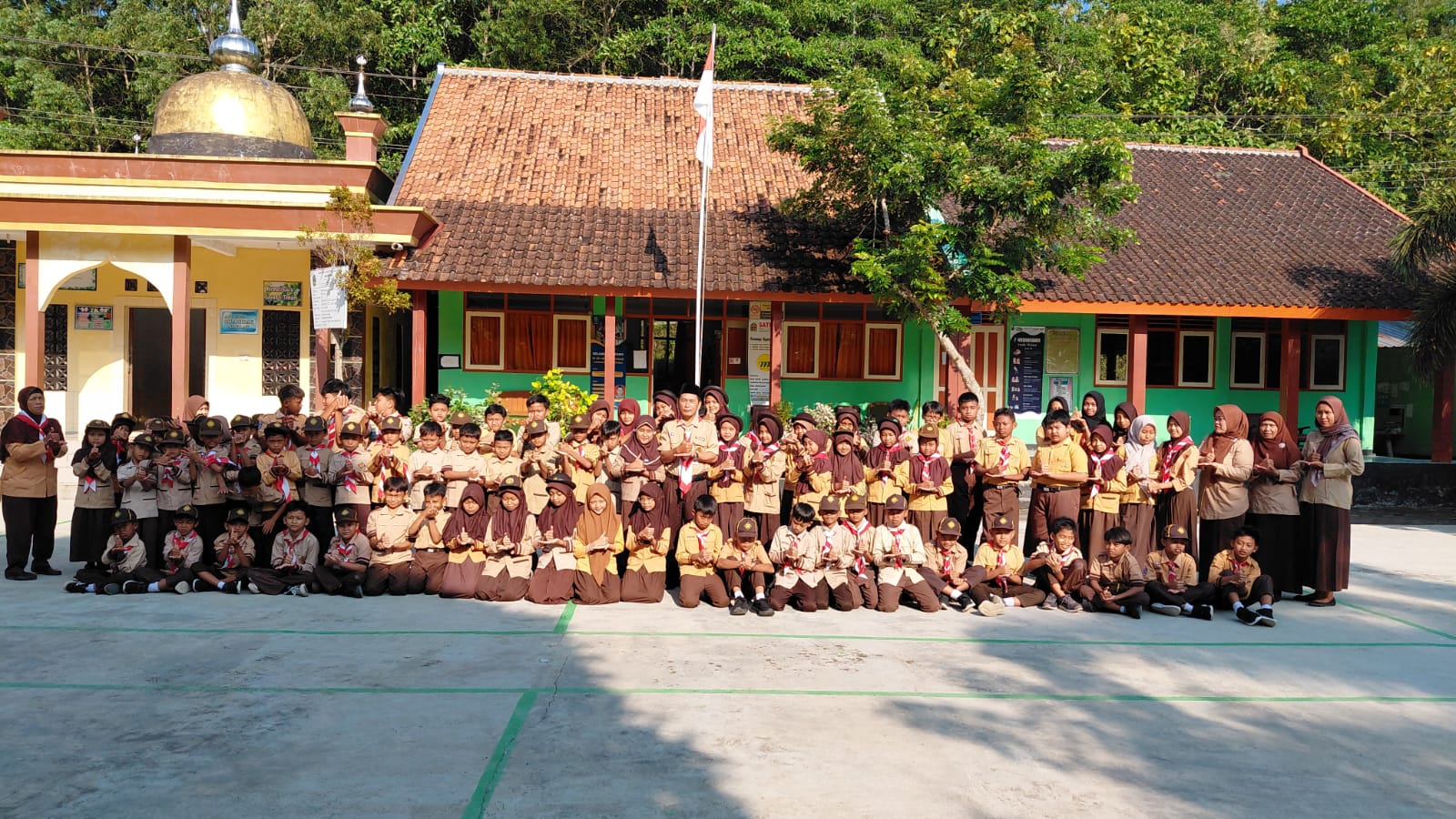Kegiatan hari ini dimulai dengan Pembiasaan sholat Dhuha dan dilanjutkan foto bersama Guru dan Tenaga Kependidikan serta siswa semuanya.